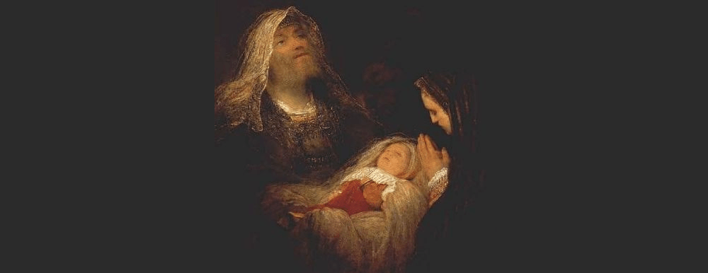 Mary, standing there with her Child is the first light of morning touching the eyes of Simeon, the son of Abraham who also believed in God and His promise when it was still dark.