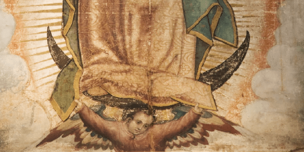 - The angel’s hands are partially hidden under the cloak of Our Lady.