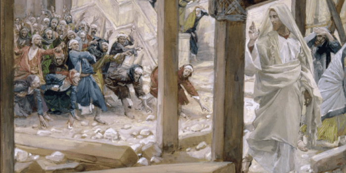 At this, they picked up stones to stone him, but Jesus hid himself, slipping away from the temple grounds. (John 8:59)